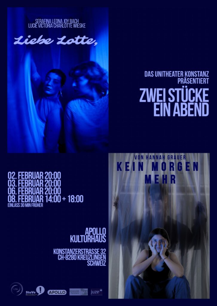 ZWEI STÜCKE, EIN ABEND – DAS UNITHEATER KONSTANZ PRÄSENTIERT ZWEI VON STUDIS ERARBEITETE KURZSTÜCKE, WELCHE THEMEN WIE VERANTWORTUNG, ISOLATION, IDENTITÄT, … DER HEUTIGEN JUNGEN GENERATION AUFGREIFEN.